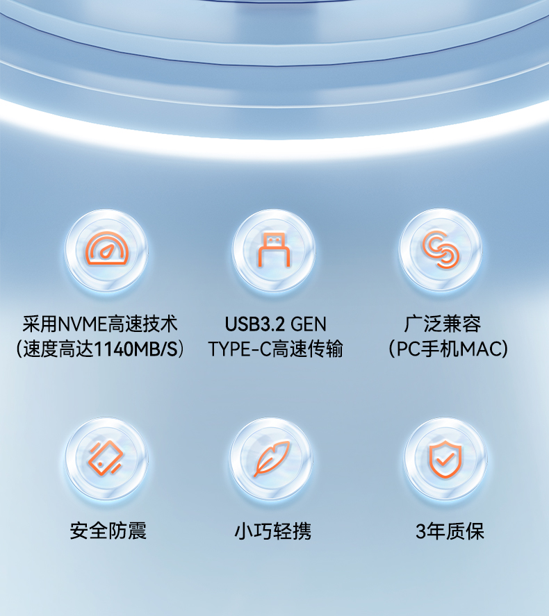 采用Type-C/USB3.2接口 高速讀寫1000MB/s 固態(tài)TLC高速傳輸 電鍍槍色金屬效果,美觀大氣 專屬禮盒包裝,送禮佳品 產(chǎn)品尺寸:63*31*9mm 包裝尺寸:135*80*30mm 單品重量:40g