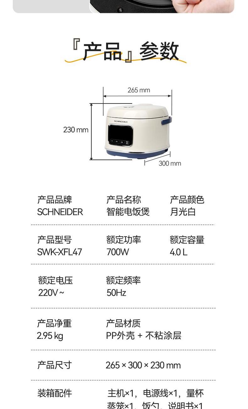 SCHNEIDER智能電飯煲SWK-XFL47