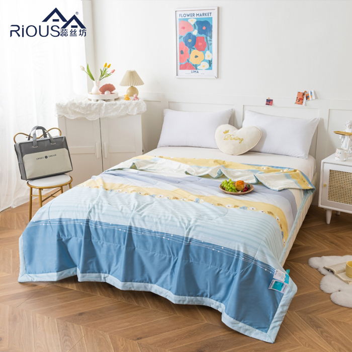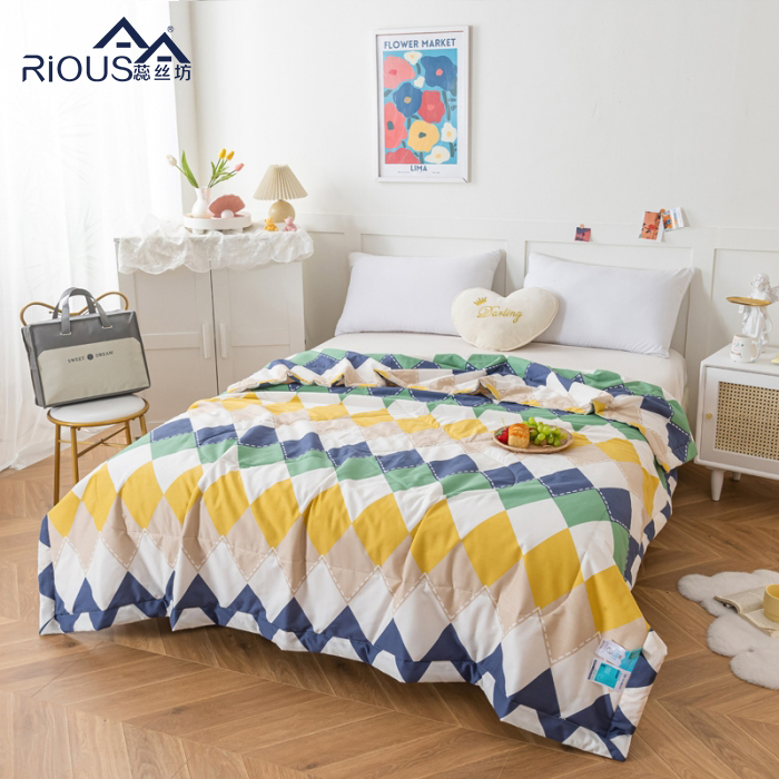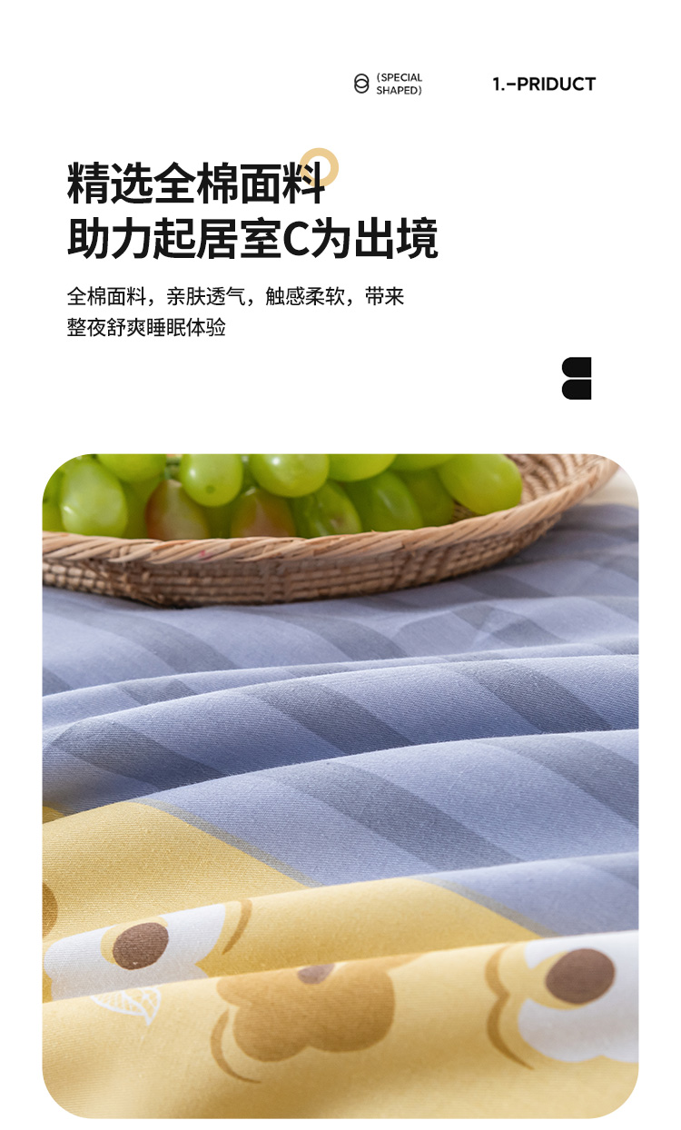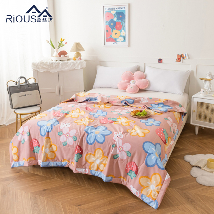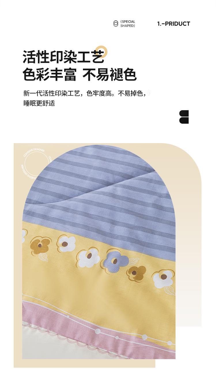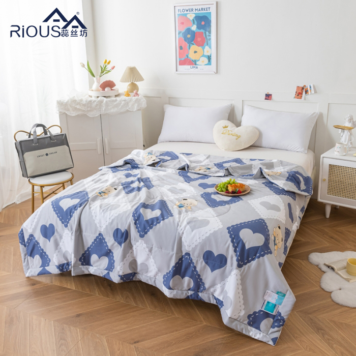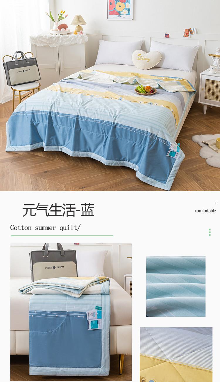 規(guī) 格:150*200cm 花 型:愛心小熊、草莓小兔、克里斯、元錦、元?dú)馍?粉 元?dú)馍?藍(lán) 面 料: 全棉 填充物:整張羽絲絨棉(聚酯纖維) 工 藝: 定位絎縫/手工包邊 全棉面料的印花立體感很強(qiáng)觸感舒適,棉質(zhì)感帶來的透氣。全棉面料不起球、不縮水、不掉色、耐洗,抗皺;手工包邊更具時(shí)尚大方,親膚透氣,貼身,更耐用,機(jī)洗手機(jī)均可,貼合性好,緊密針腳絎縫。