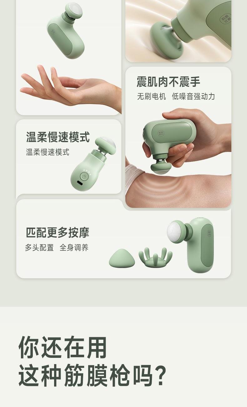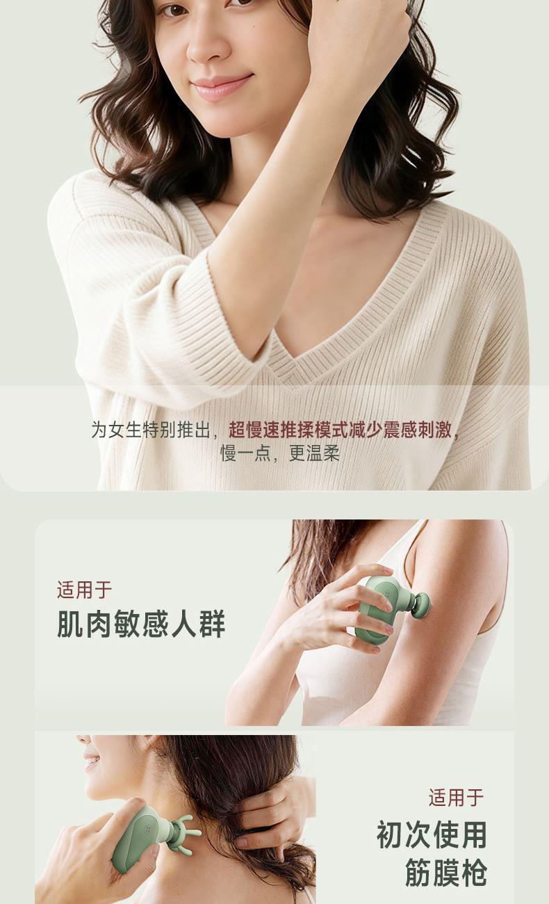 3、為女生特別定制“超慢速推揉模式”,還搭載了無刷電機(jī),穩(wěn)定輸出強(qiáng)勁動力低噪運(yùn)行,只震肌不震手,4檔力度調(diào)節(jié),溫柔化解每一處酸脹與僵硬;