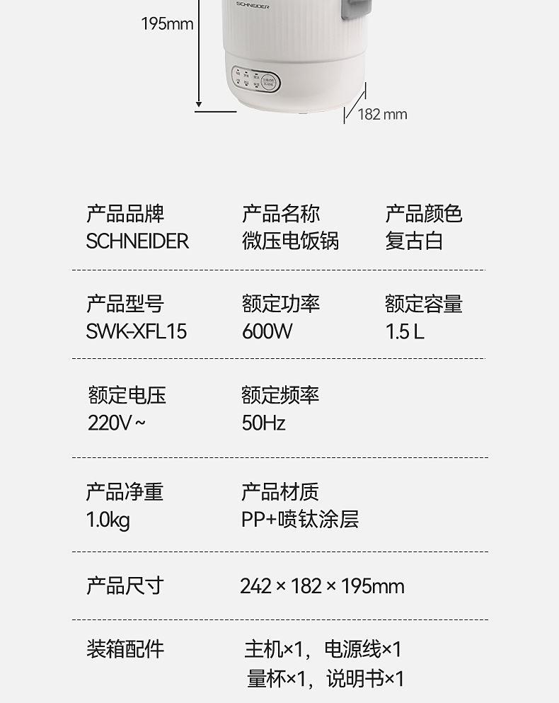SCHNEIDER多功能微壓鍋SWK-XFL15