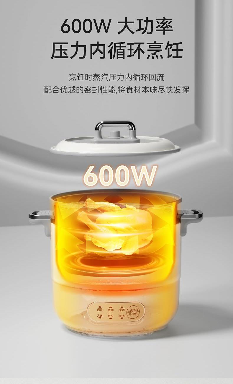 600W文武火,慢燉出味,快煮省時,食材軟爛更入味
