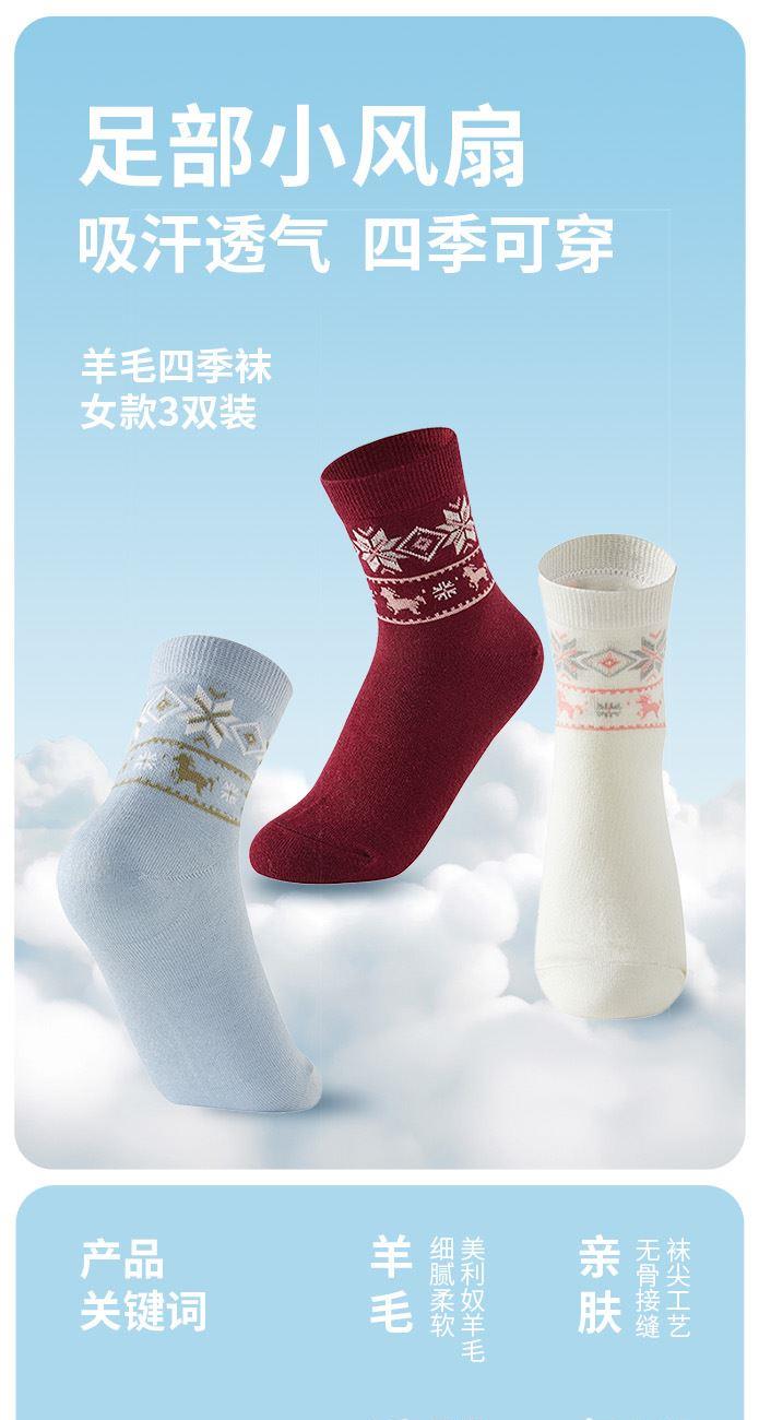 恒源祥羊毛四季襪女款3雙裝HYX064WZ