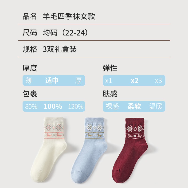 恒源祥羊毛四季襪女款3雙裝HYX064WZ 禮品已成功加入PPT!