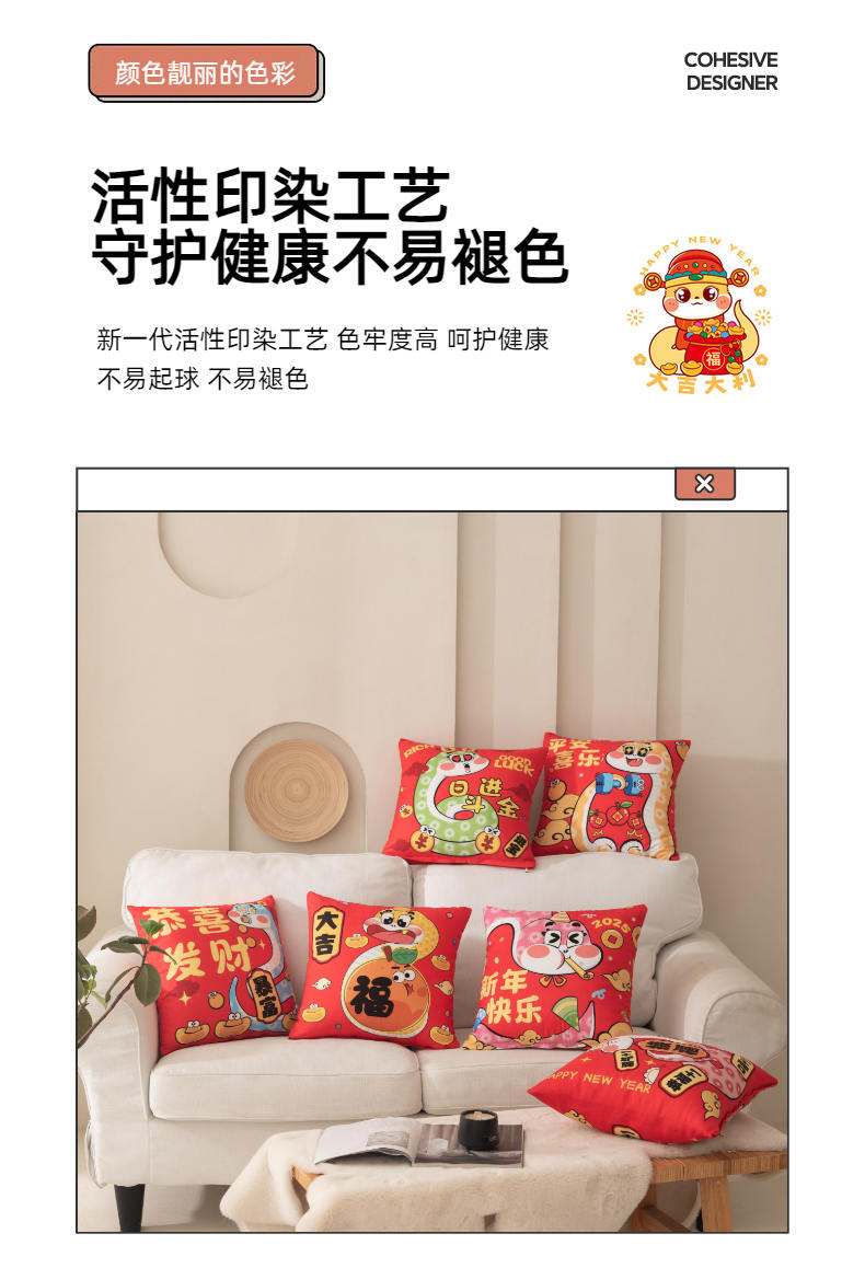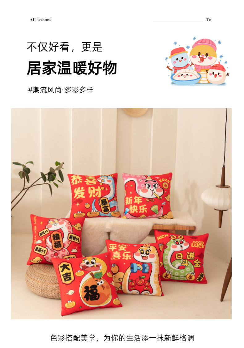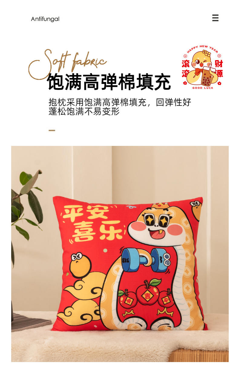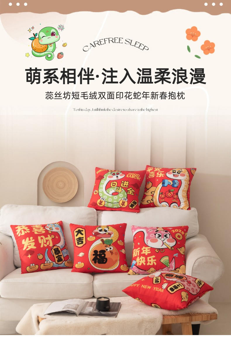 蕊絲坊家紡短毛絨雙面印花新春抱枕(可定制) 蕊絲坊家紡短毛絨雙面印花新春抱枕(可定制)
