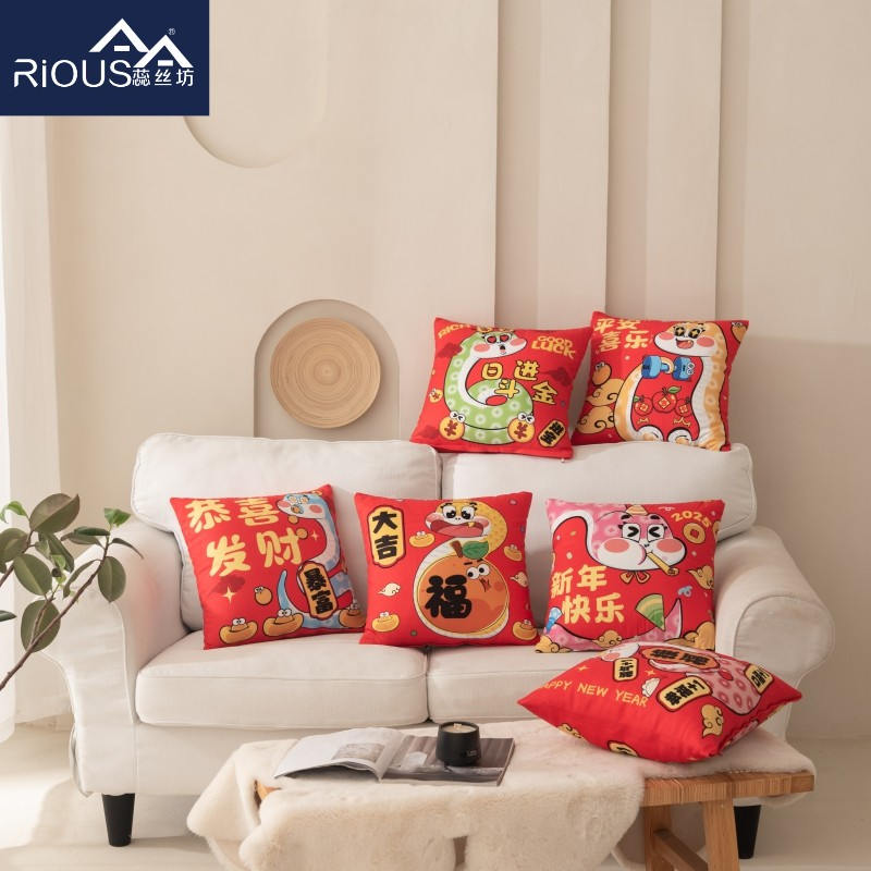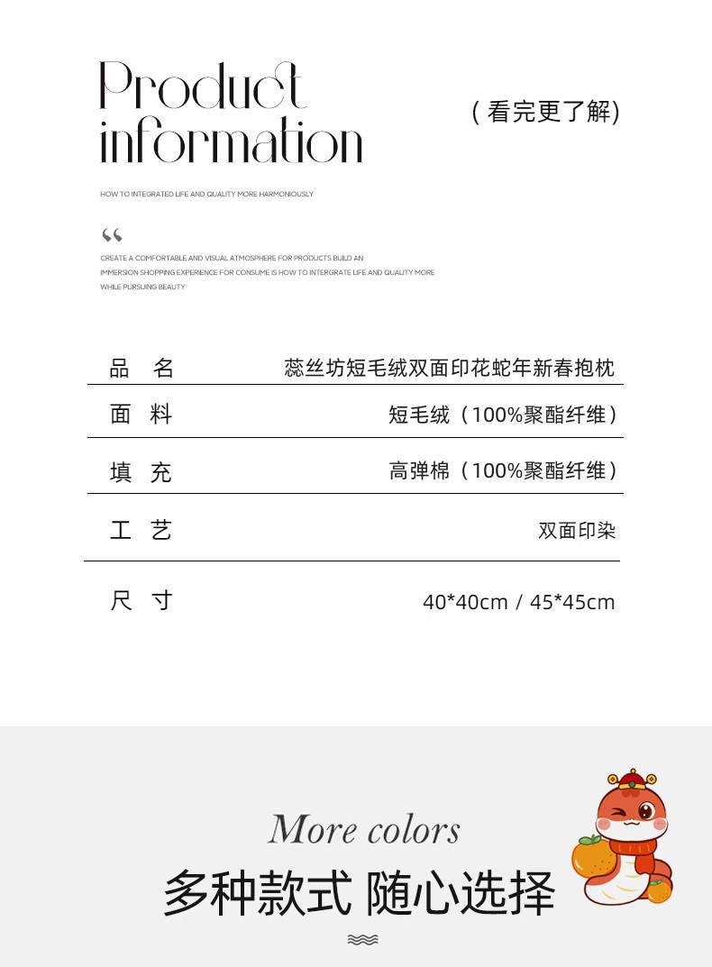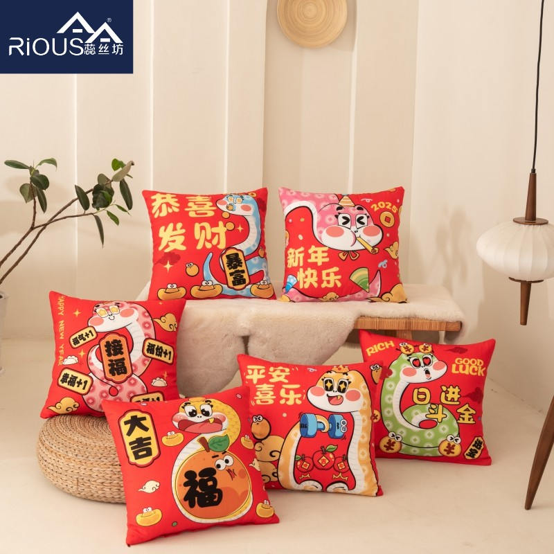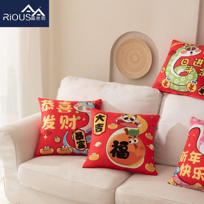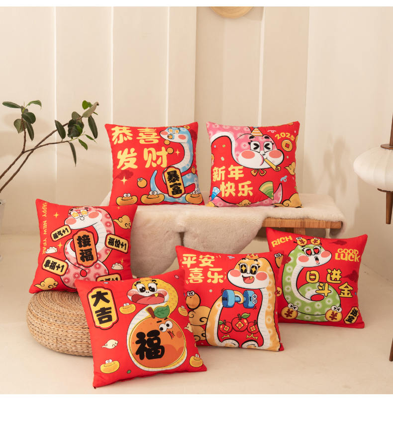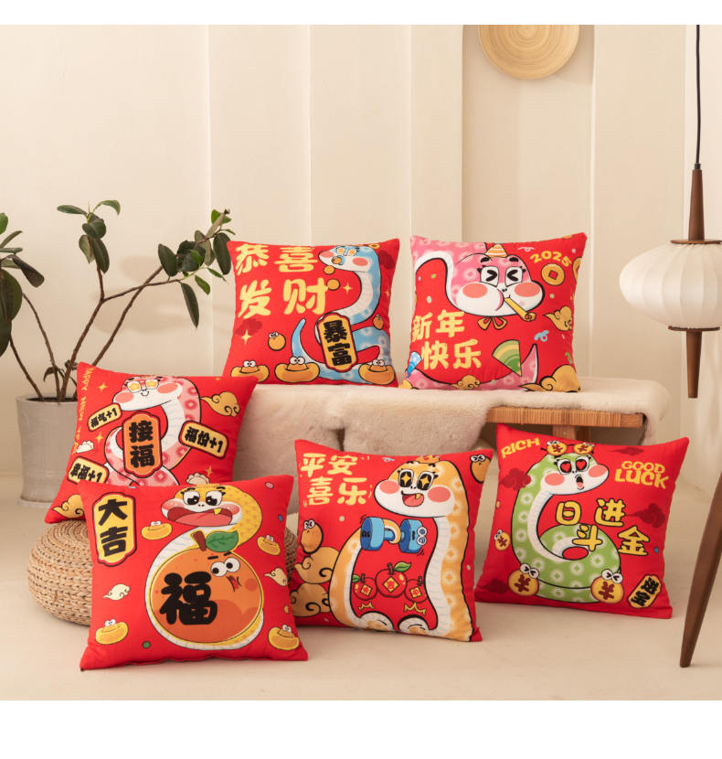 蕊絲坊家紡短毛絨雙面印花新春抱枕(可定制) 蕊絲坊家紡短毛絨雙面印花新春抱枕(可定制)