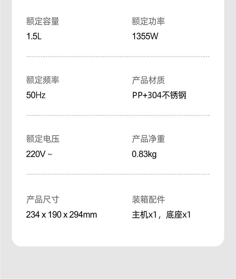 額定容量:1.5L
