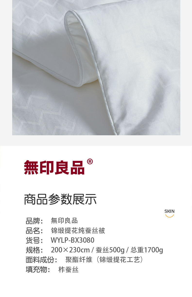 無印良品錦緞提花純蠶絲被WYLP-BX3080 無印良品錦緞提花純蠶絲被WYLP-BX3080