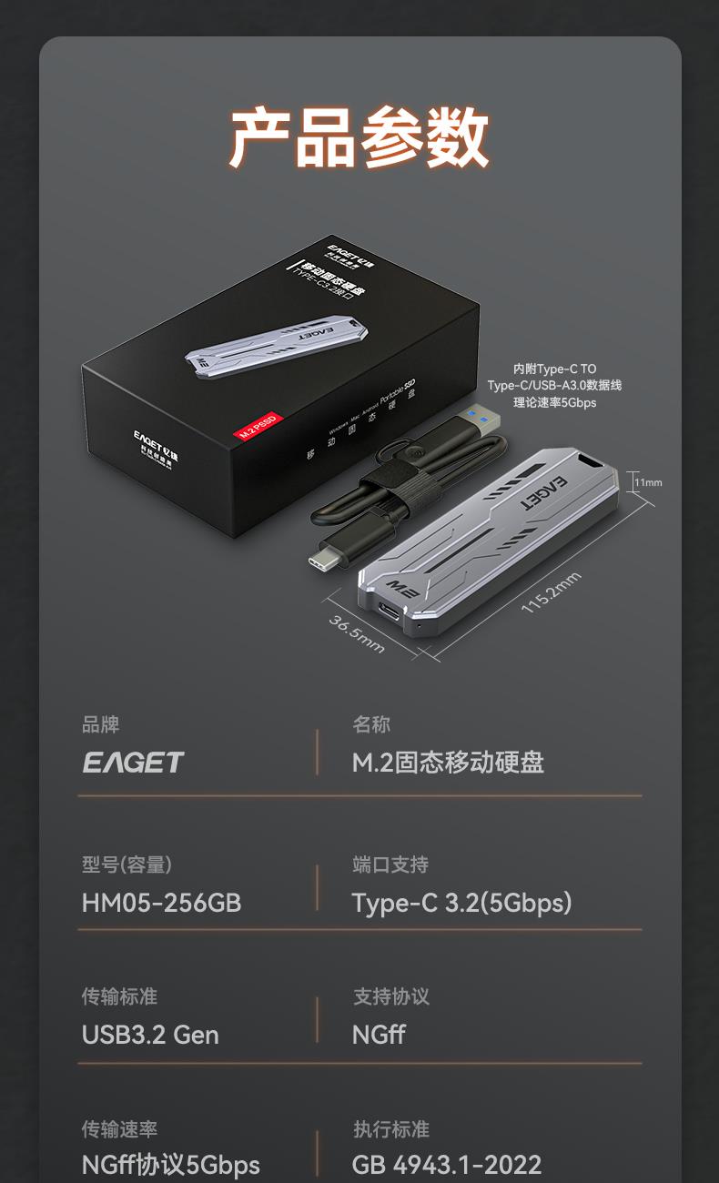 (EAGET)憶捷M.2固態(tài)硬盤HM05高速存儲硬盤256G