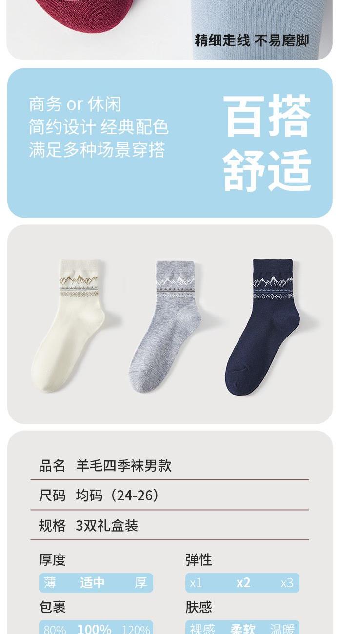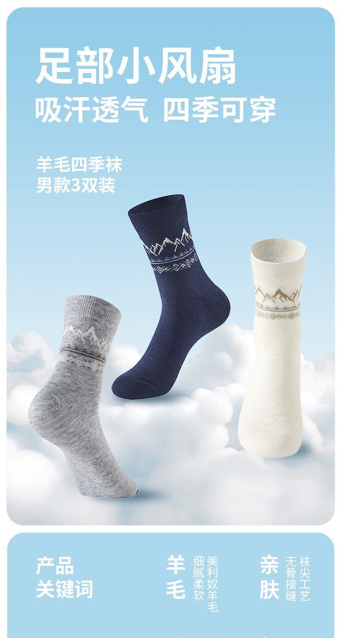 恒源祥羊毛四季襪男款3雙裝HYX063WZ