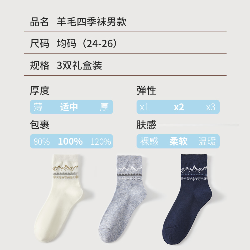 恒源祥羊毛四季襪男款3雙裝HYX063WZ 禮品已成功加入PPT!