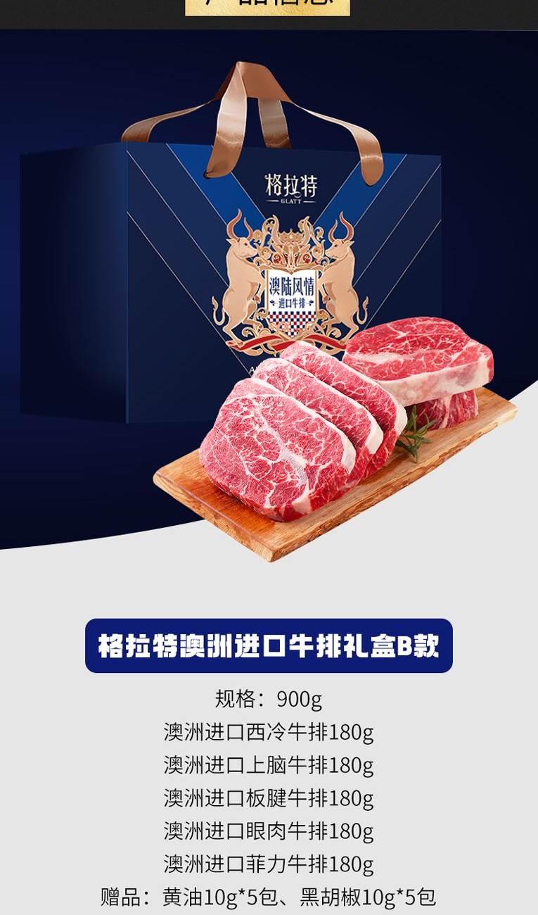 格拉特澳洲進(jìn)口牛排禮盒B款900g 禮品已成功加入PPT!