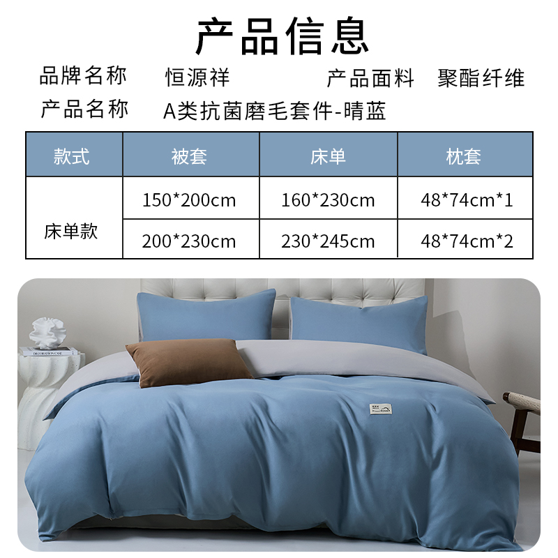 恒源祥A類磨毛四件套-晴藍(lán)HYX360TJ