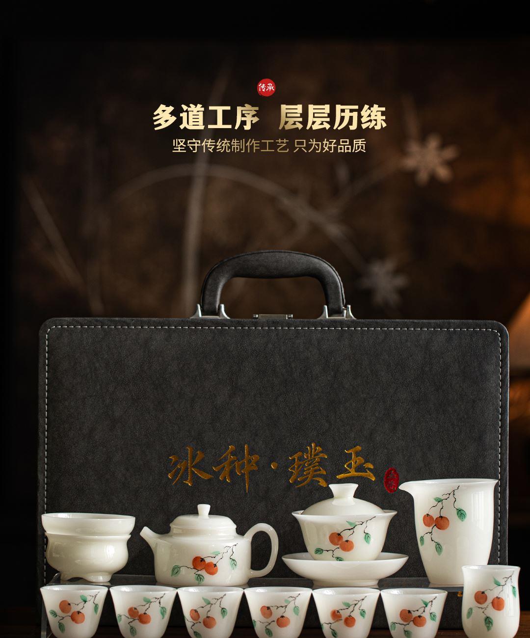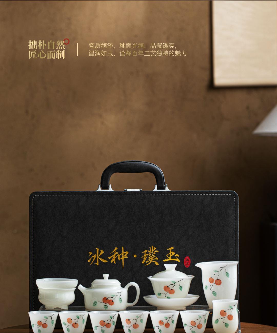 尾橋下窯冰種璞玉手繪12頭柿事如意功夫套裝節(jié)日新年商務(wù)伴手禮 禮品已成功加入PPT!
