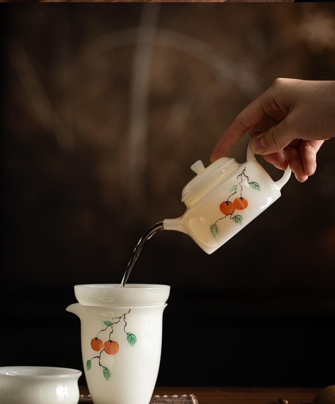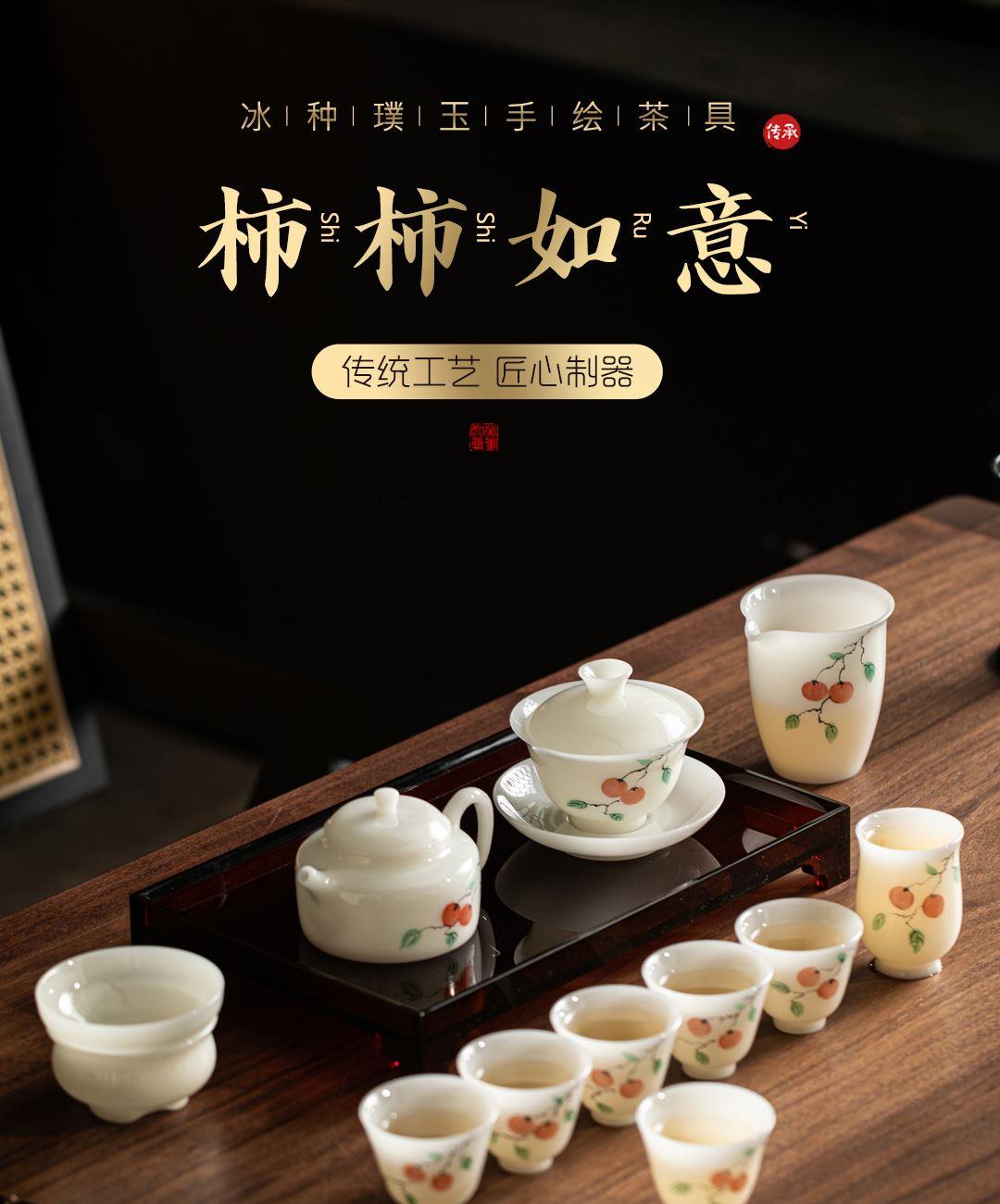 尾橋下窯冰種璞玉手繪12頭柿事如意功夫套裝節(jié)日新年商務(wù)伴手禮 尾橋下窯冰種璞玉手繪12頭柿事如意功夫套裝節(jié)日新年商務(wù)伴手禮