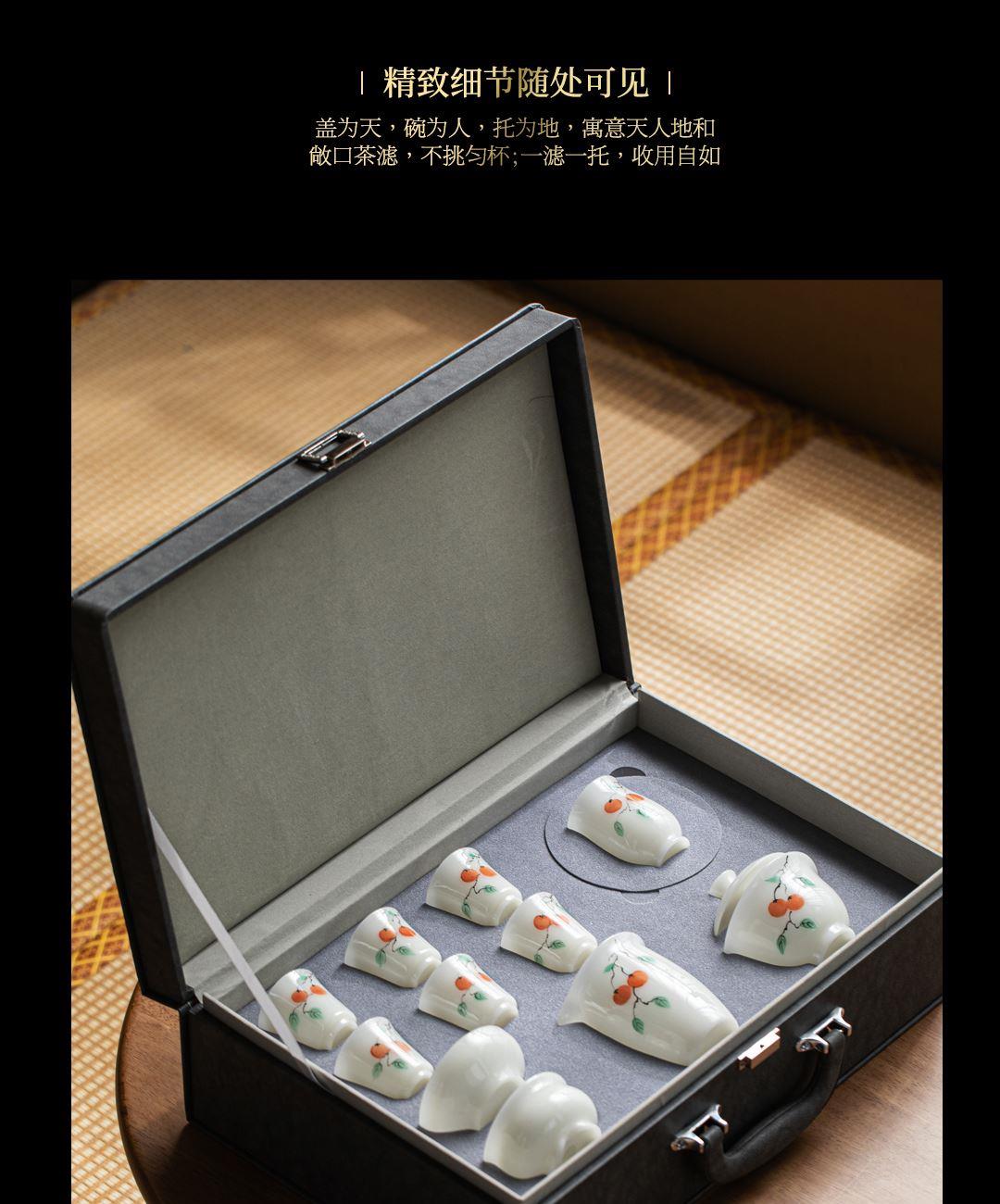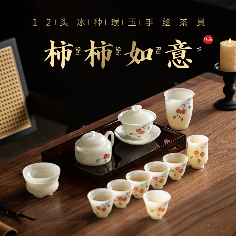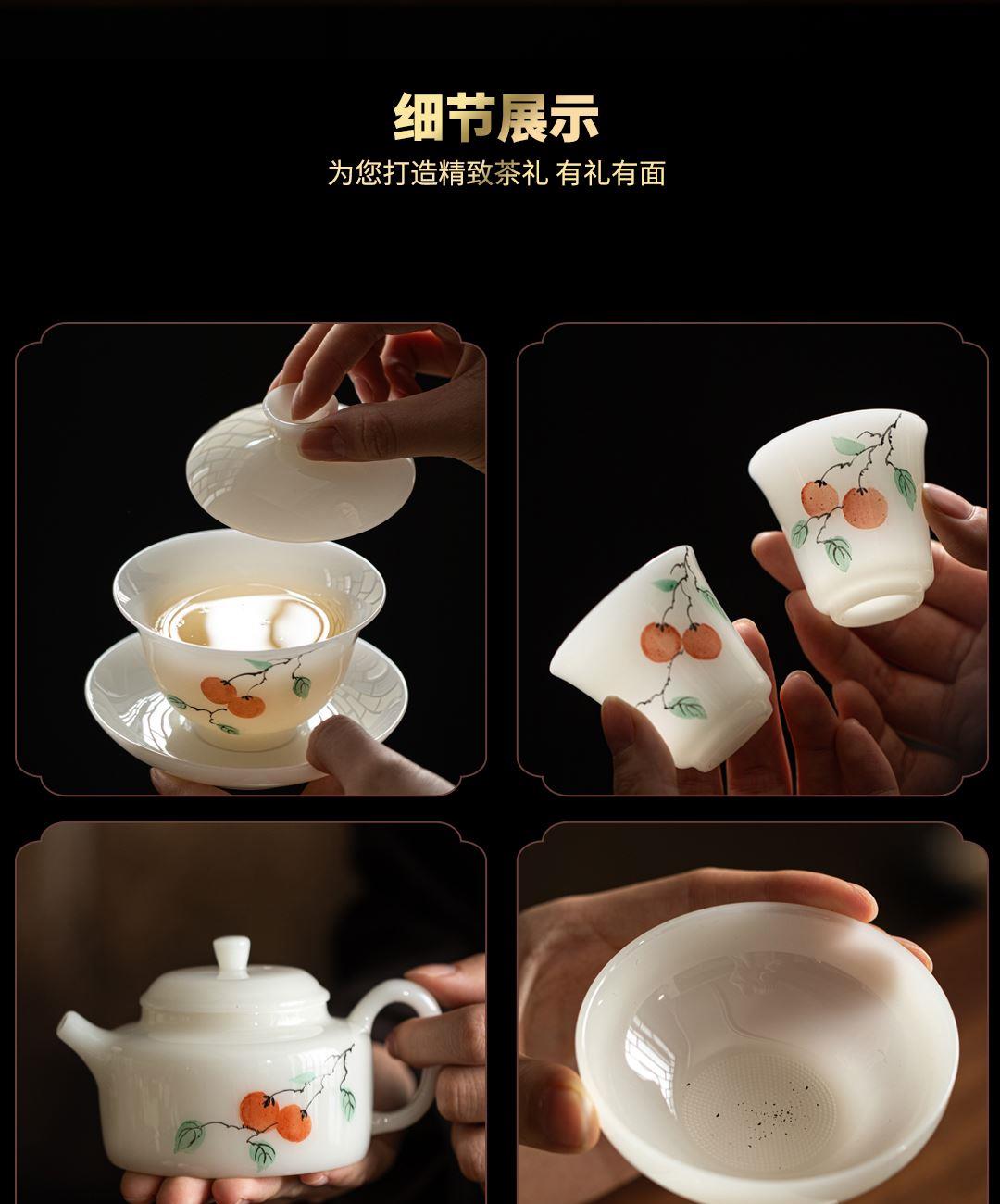 尾橋下窯冰種璞玉手繪12頭柿事如意功夫套裝節(jié)日新年商務(wù)伴手禮