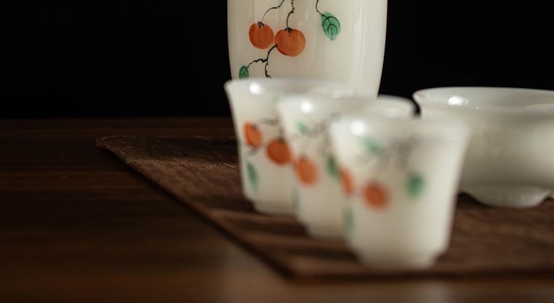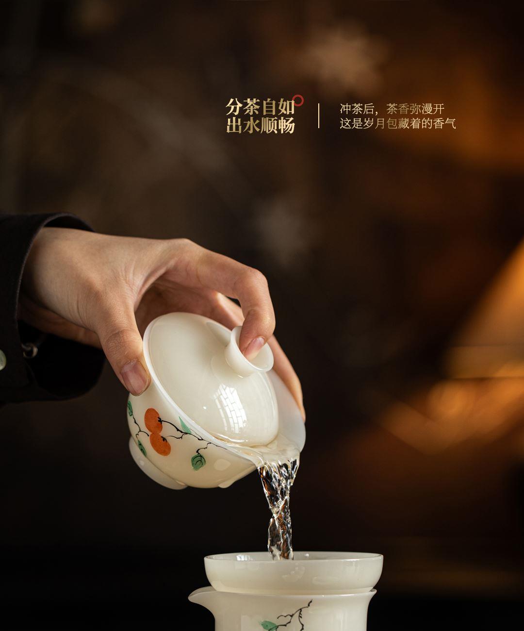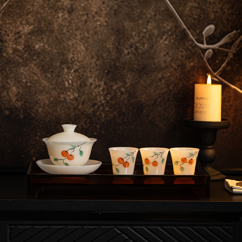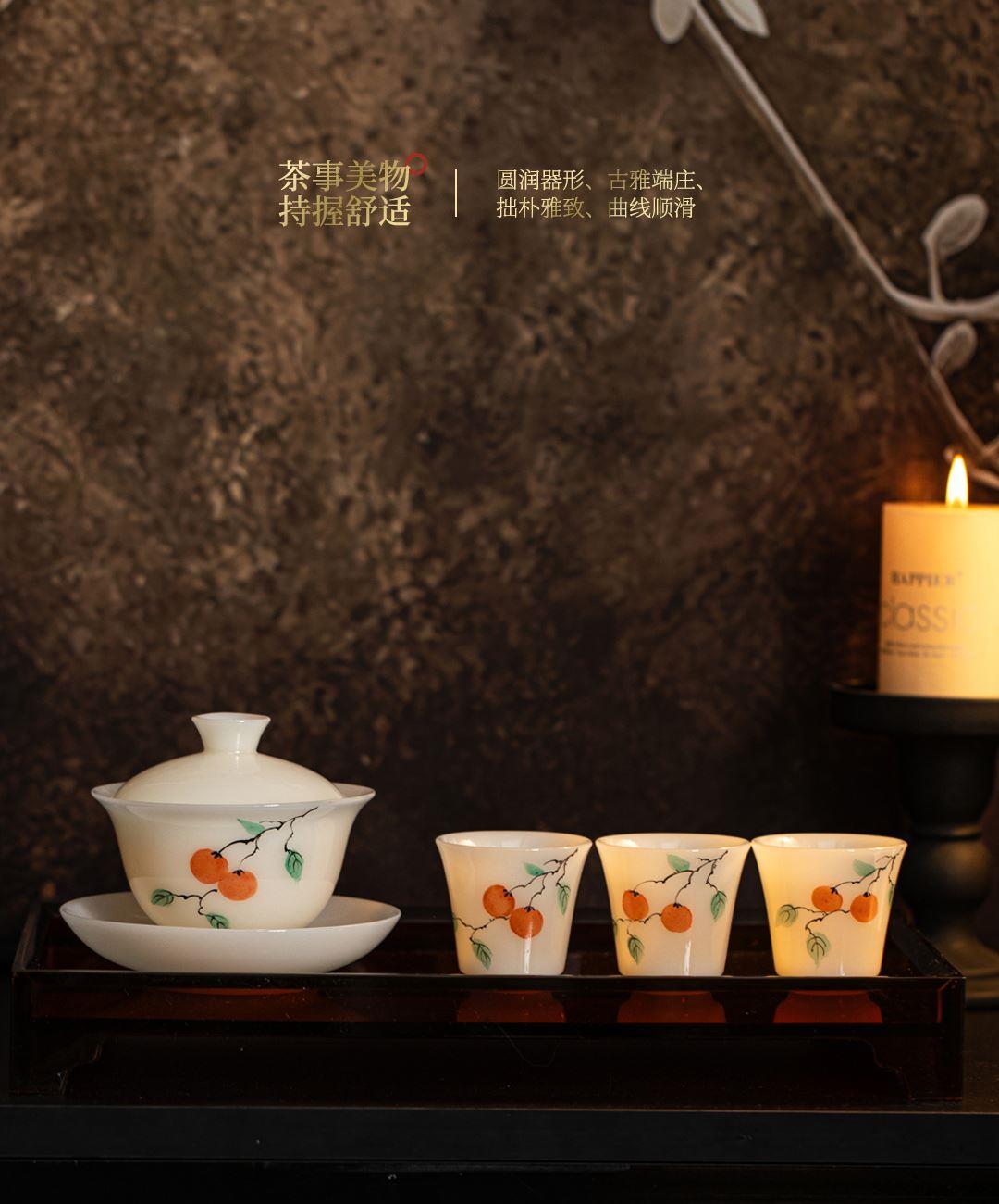 尾橋下窯冰種璞玉手繪12頭柿事如意功夫套裝節(jié)日新年商務(wù)伴手禮