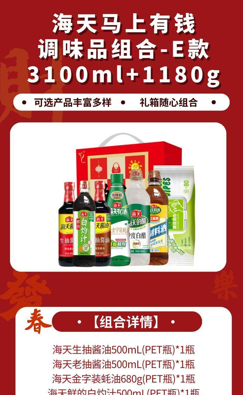 海天馬上有錢調(diào)味品組合-E款3100ml+1180g
