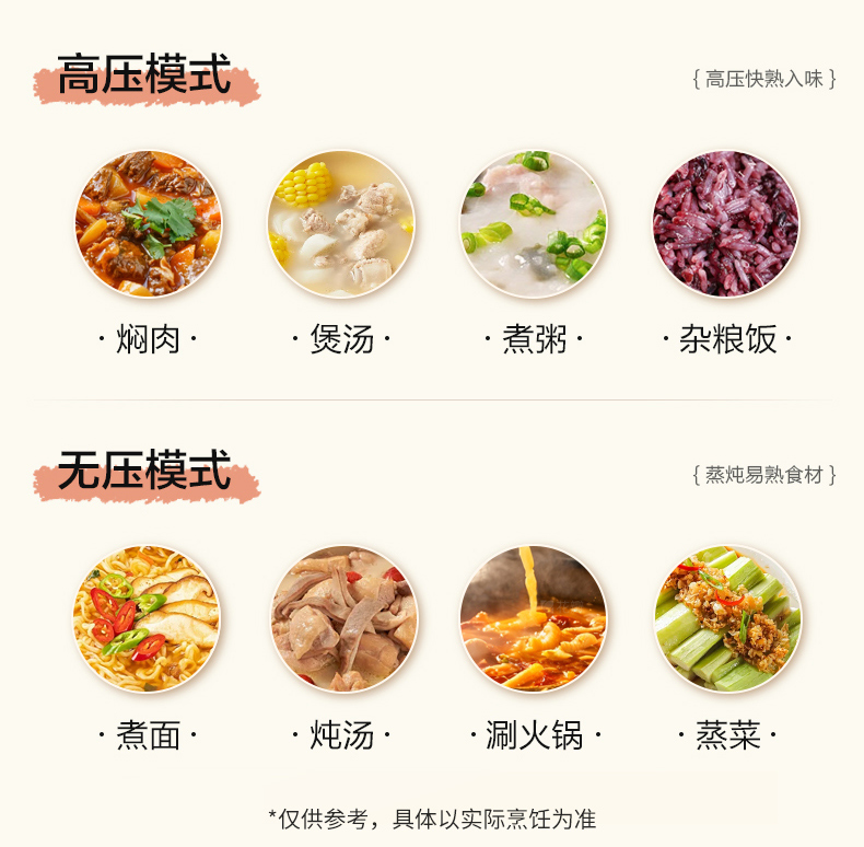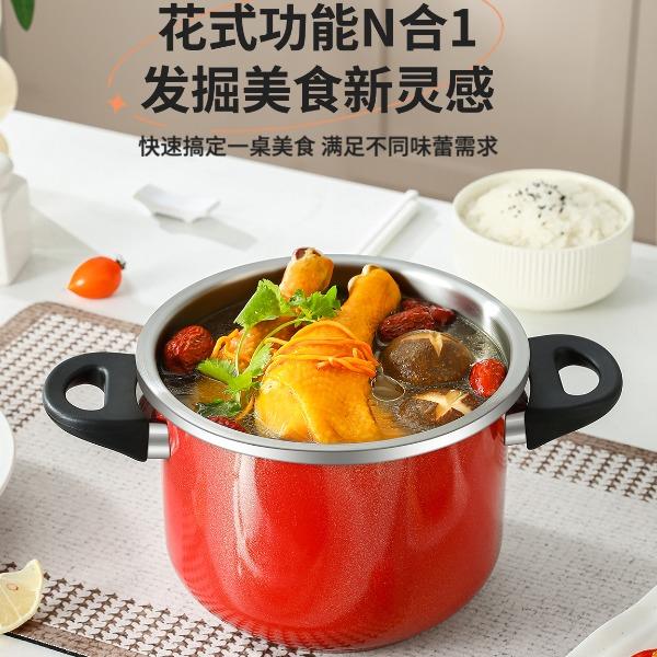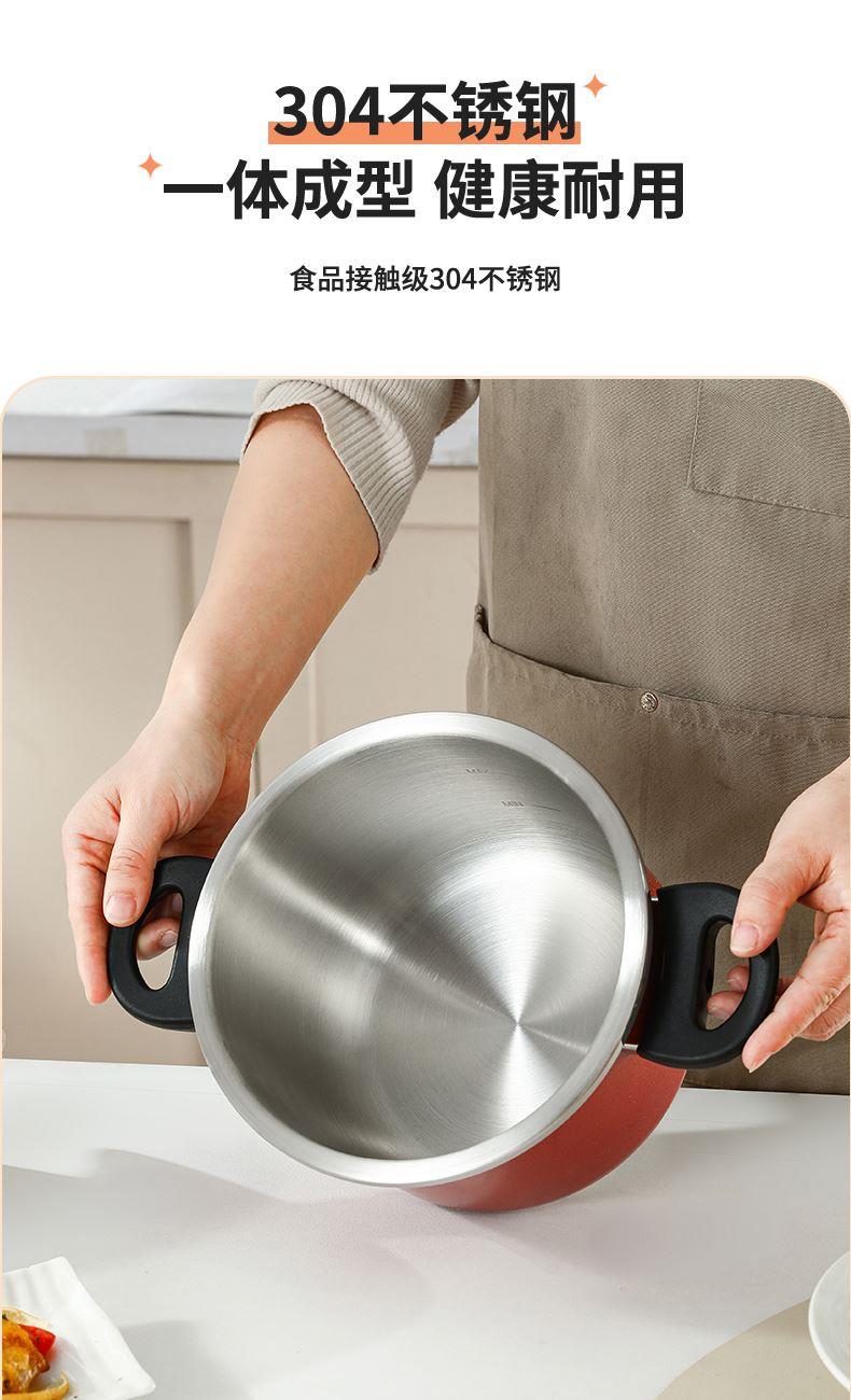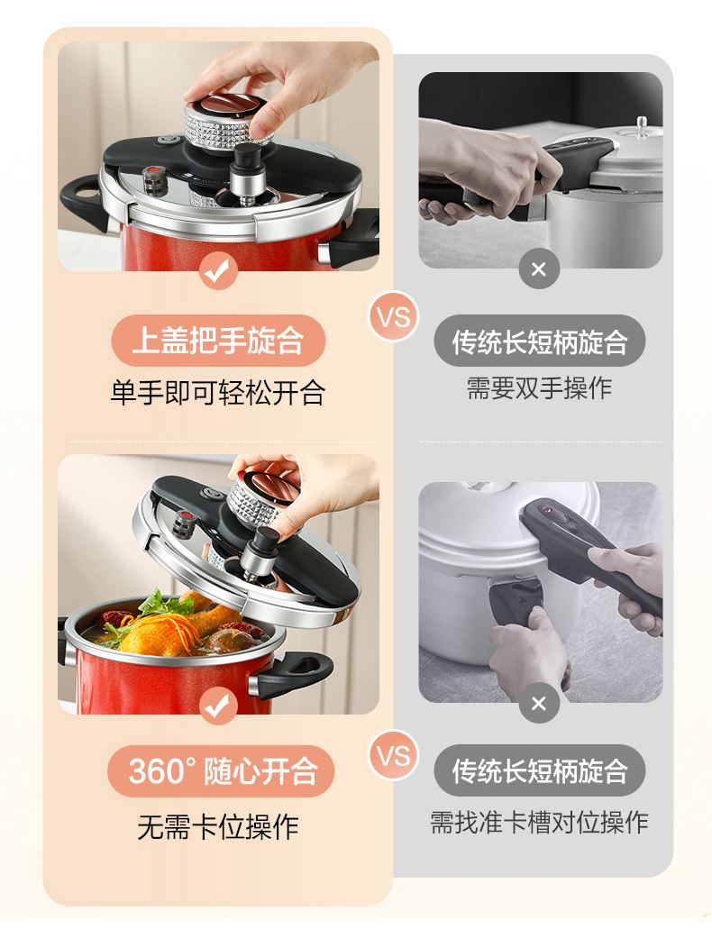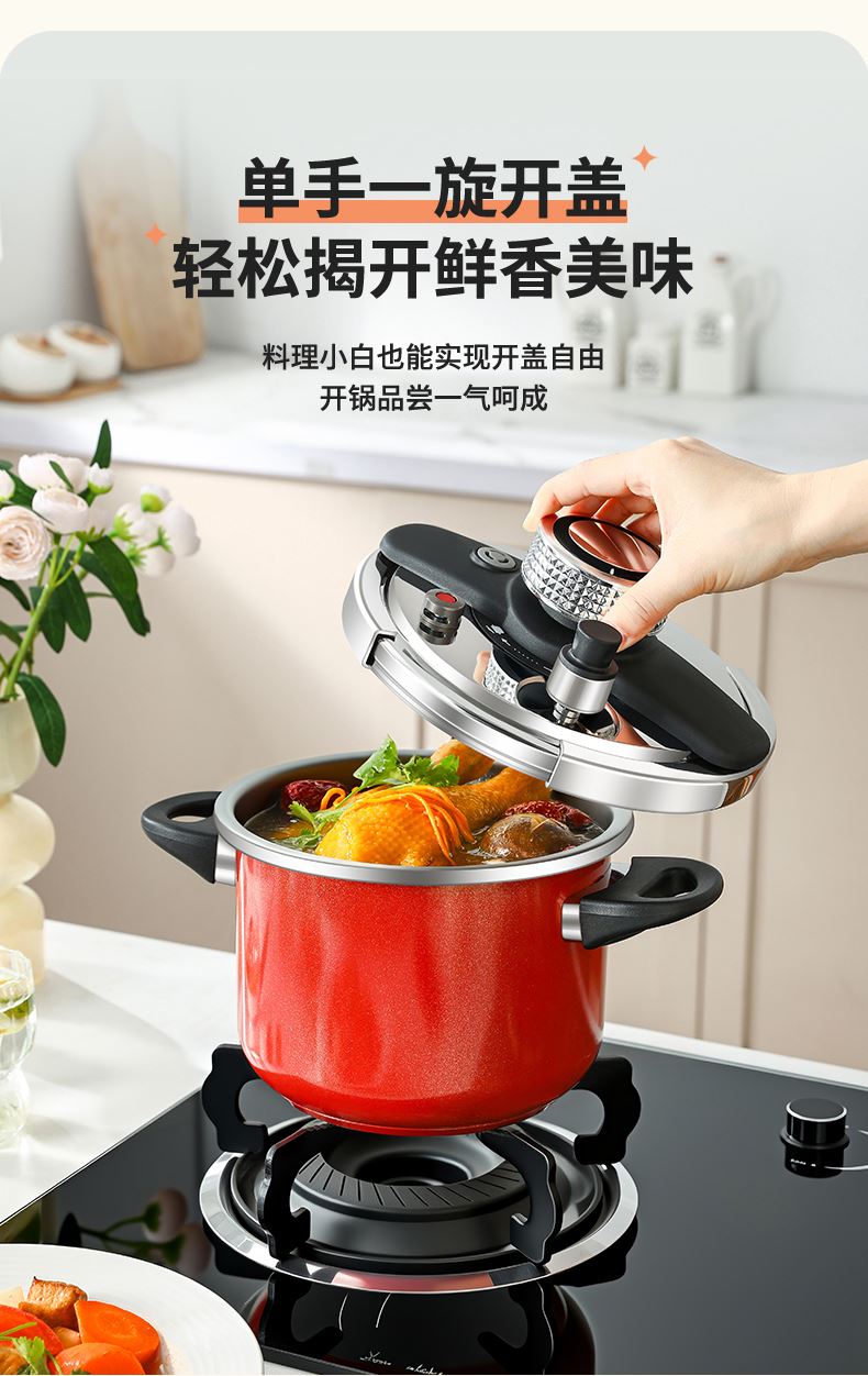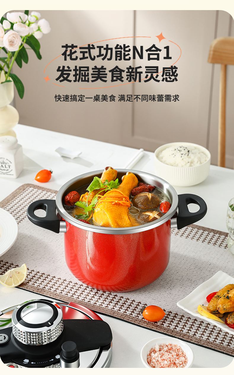 直徑:18cm 容量:3.2L 凈重:2.0kg 材質(zhì):304不銹鋼 ① 鍋身采用304不銹鋼,鍋體外面紅色仿陶瓷高溫噴漆 ② 360°C任意卡位旋轉(zhuǎn),可單手開蓋。 ③泄壓保護(hù),安全防爆 ④100KPA恒定氣壓 ⑤加厚復(fù)底,鍋身一體、電木雙把手設(shè)計(jì),隔熱防燙