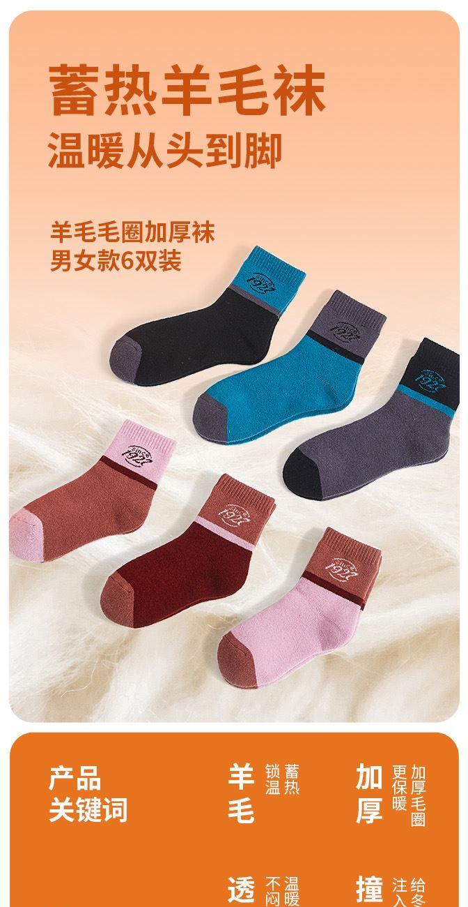 恒源祥羊毛毛圈加厚襪男女款6雙裝HYX068WZ