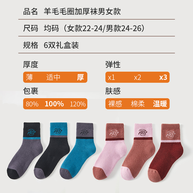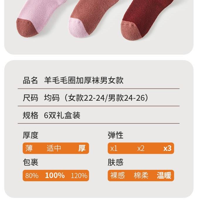 恒源祥羊毛毛圈加厚襪男女款6雙裝HYX068WZ 禮品已成功加入PPT!