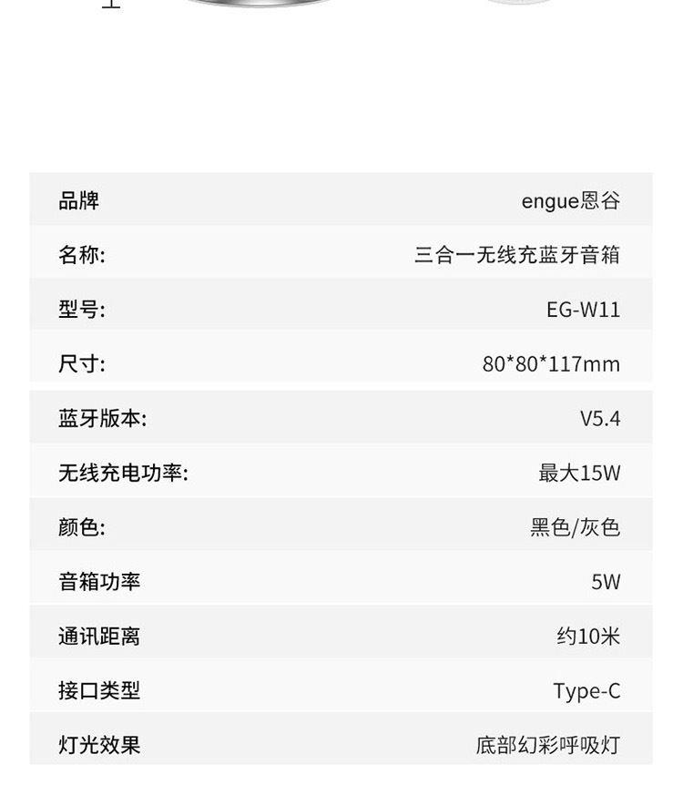 engue恩谷15W藍牙音箱無線充&氛圍燈EG-W11 engue恩谷15W藍牙音箱無線充&氛圍燈EG-W11