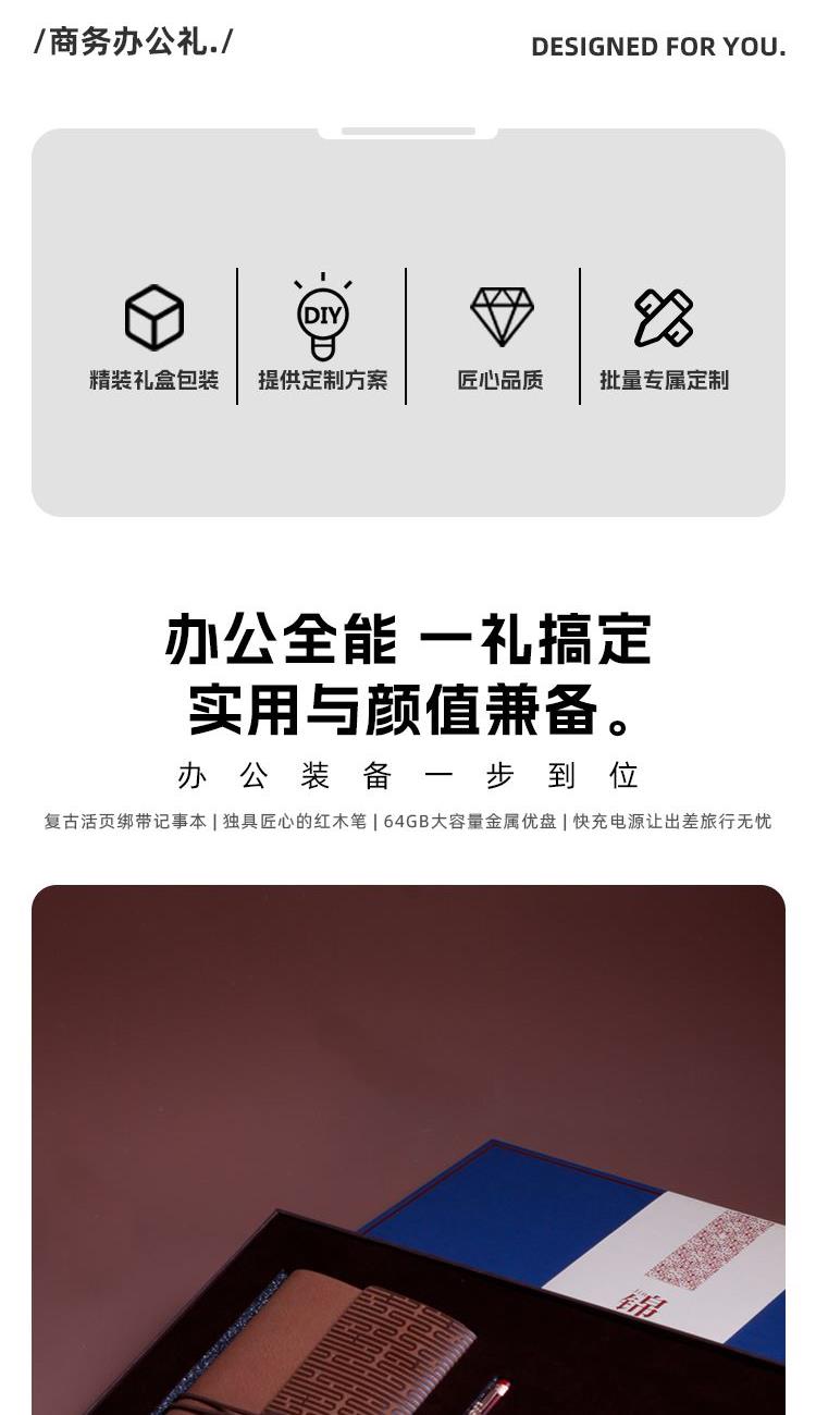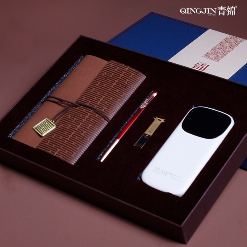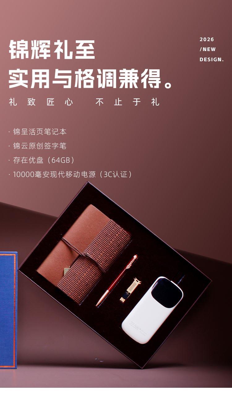 青錦【錦輝】錦呈記事本實(shí)木簽字筆64g優(yōu)盤一萬毫安充電寶禮盒