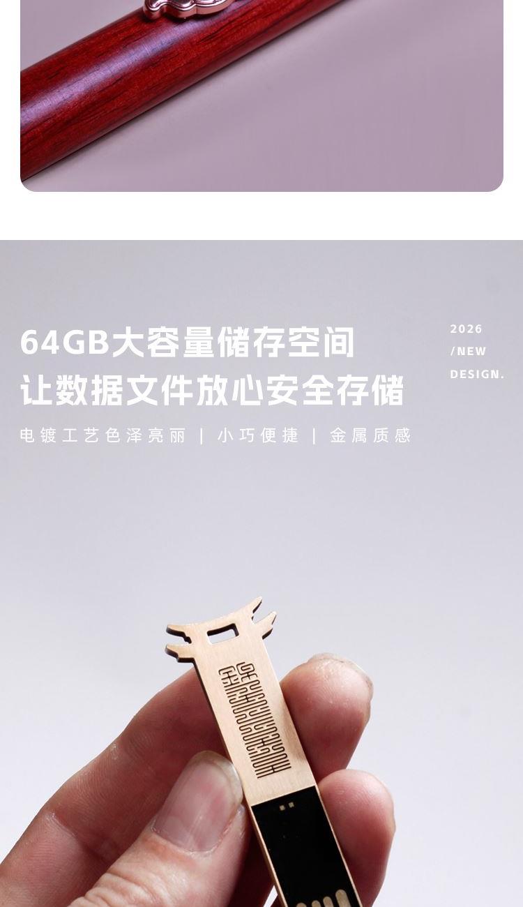 筆記本:變色皮革千越象牙白紙100克80張;簽字筆:紅花梨/筆頭銅管筆夾鋅合金鍍金;電源:塑料;優(yōu)盤 :鋅合金鍍金