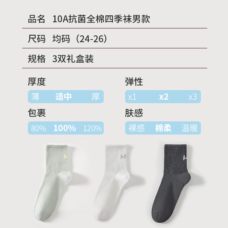 恒源祥10A全棉四季襪男款3雙裝HYX057WZ
