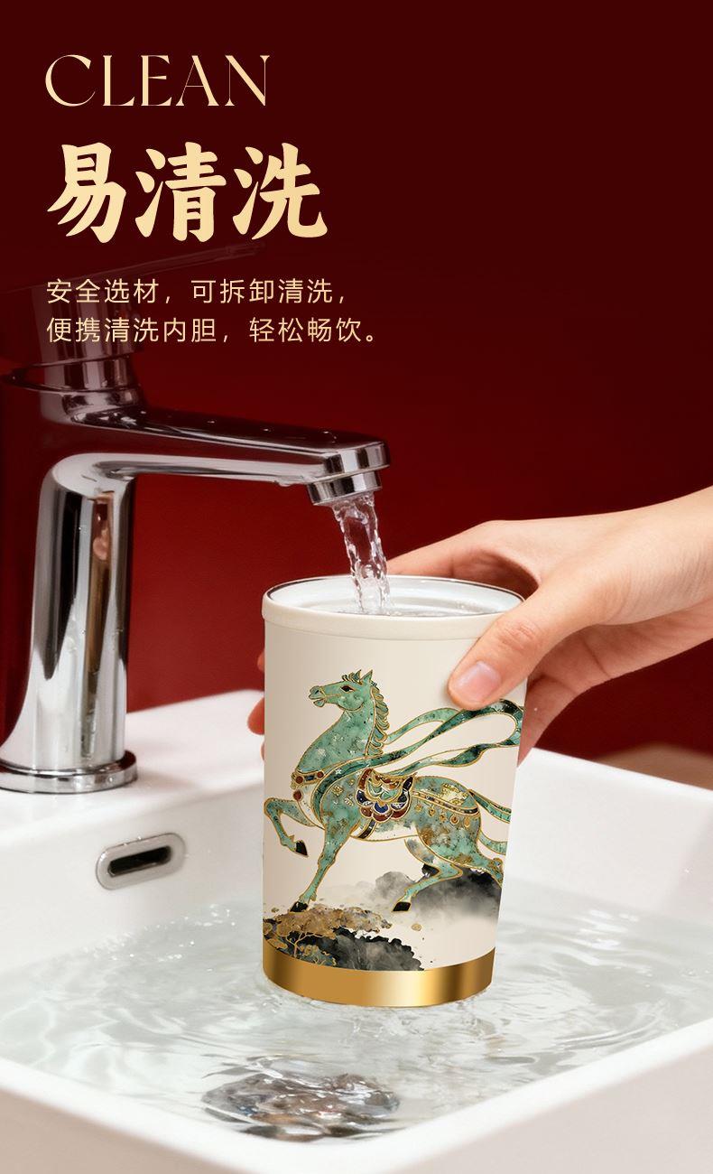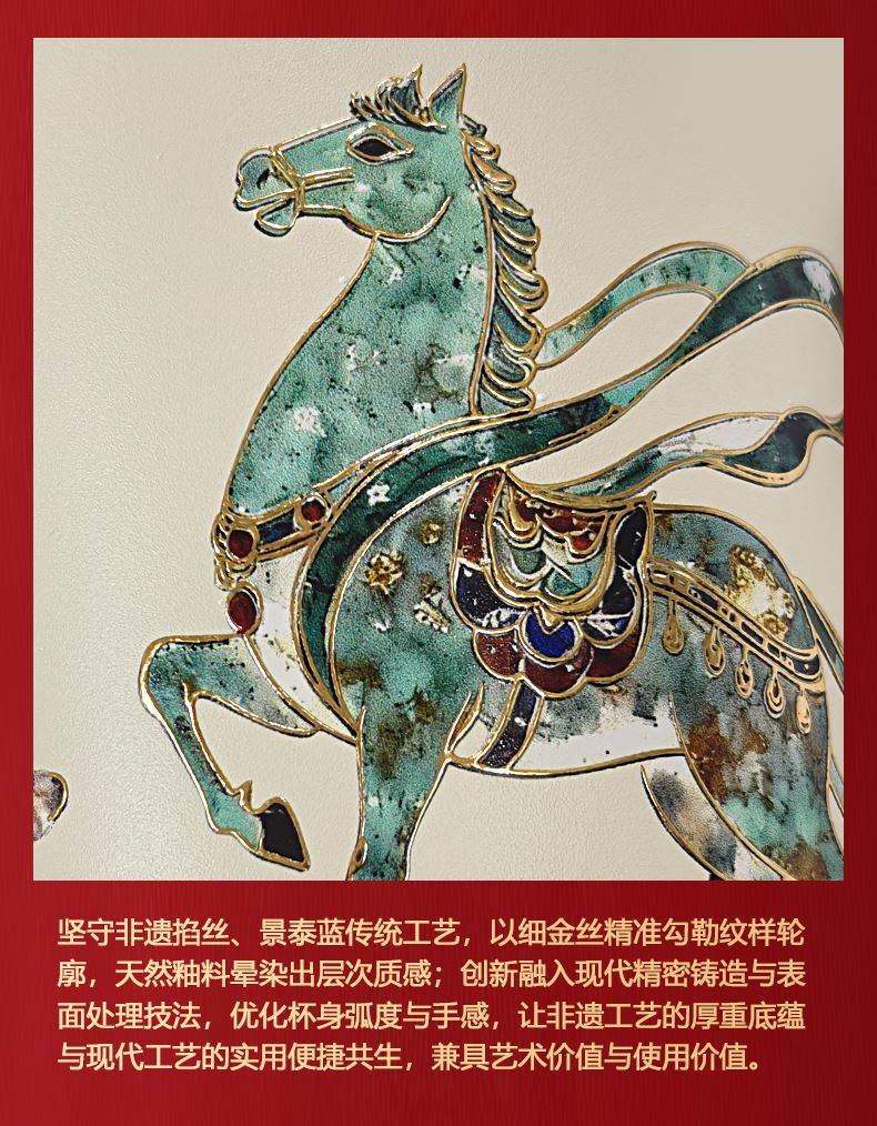 堅(jiān)守非遺掐絲、景泰藍(lán)傳統(tǒng)工藝,以細(xì)金絲勾勒紋樣輪廓,天然釉料暈染出層次質(zhì)感;創(chuàng)新融入現(xiàn)代精密鑄造與表面處理技法,優(yōu)化杯身弧度與手感,讓非遺工藝的厚重底蘊(yùn)與現(xiàn)代工藝的實(shí)用便捷共生,兼具藝術(shù)價(jià)值與使用價(jià)值。