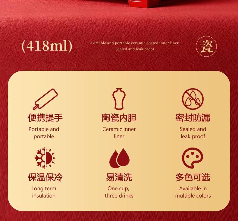 杯身噴塑附著力強(qiáng)、316杯體、瓷內(nèi)膽,易清洗