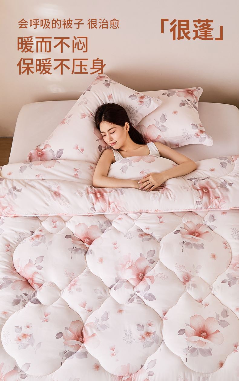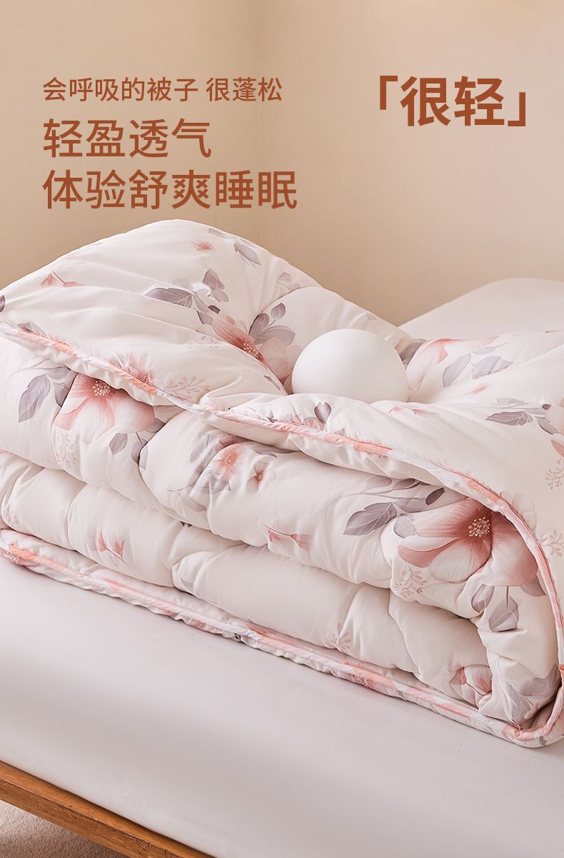 規(guī)格:200*230cm 面料:聚酯纖維 填充:90%聚酯纖維 10%聚乙烯醇纖維(含有蛋白) 填充重量:1900g 總重:約2750g