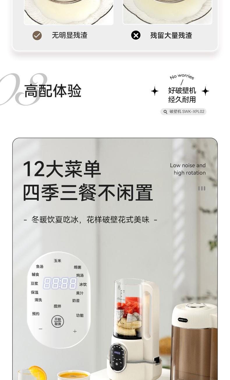 一鍵觸控,帶預約功能,具有豆?jié){,輔食,果汁等多種功能,滿足日常需求