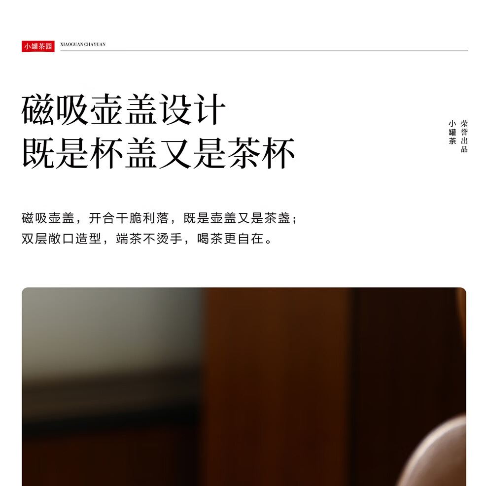 磁吸壺蓋,開合干脆利落,既是壺蓋又是茶盞;雙層敞口造型,端茶不燙手,喝茶更自在。