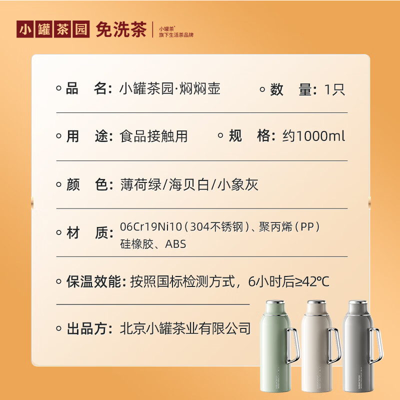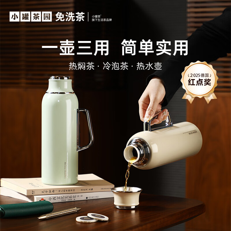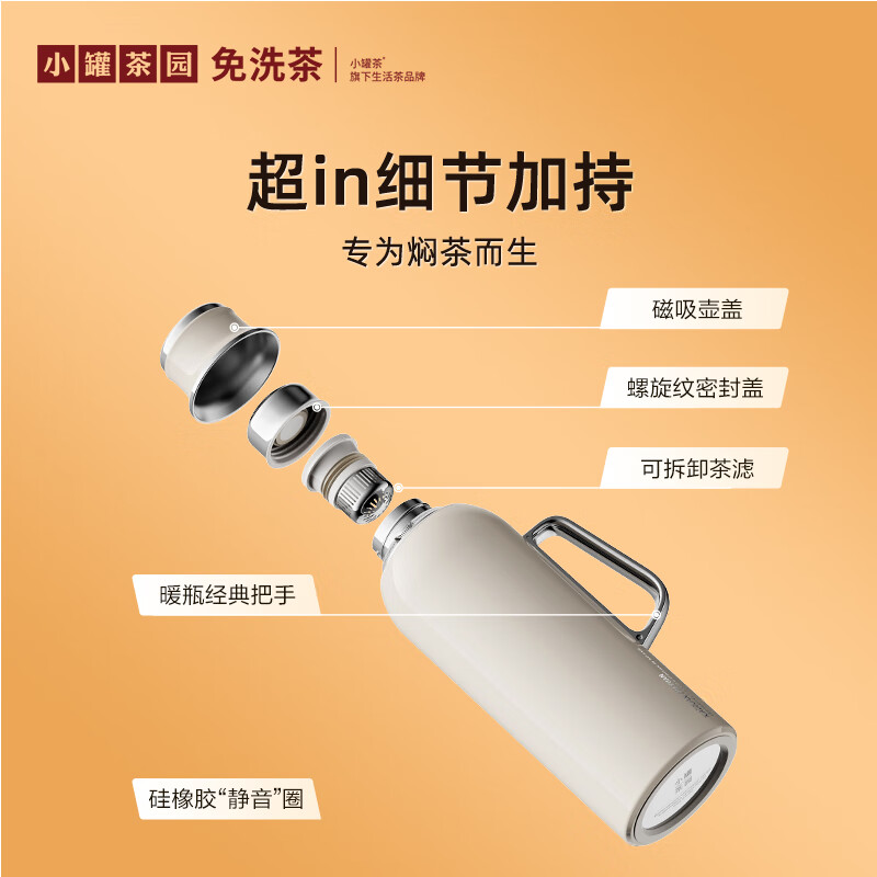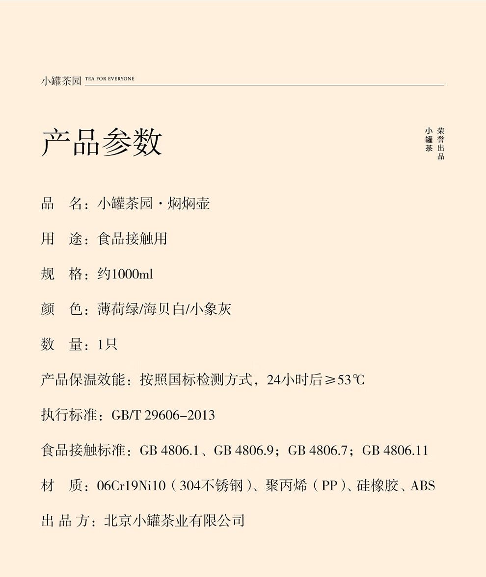 小罐茶-304食品級不銹鋼泡茶具燜燜杯保溫水壺1L禮盒商務(wù)品