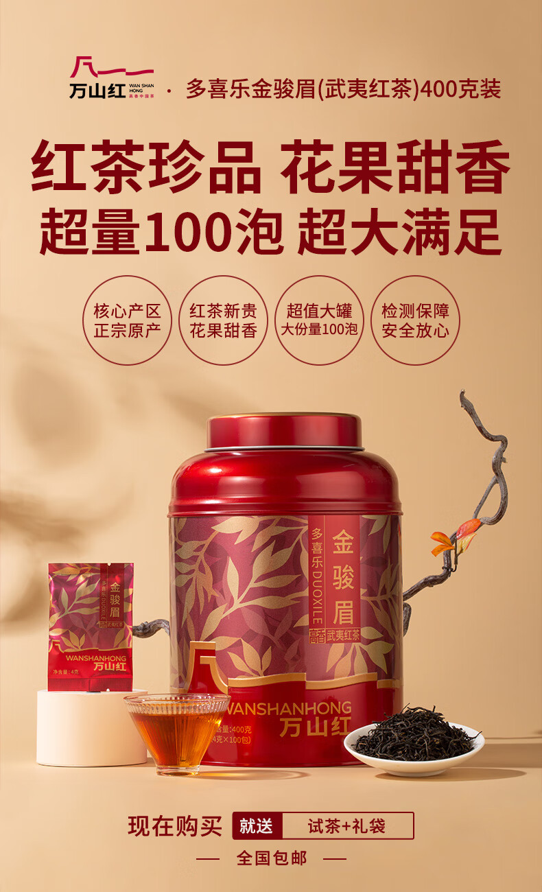 八馬萬(wàn)山紅武夷紅茶金駿眉200g+大單罐多喜樂(lè)金駿眉400g