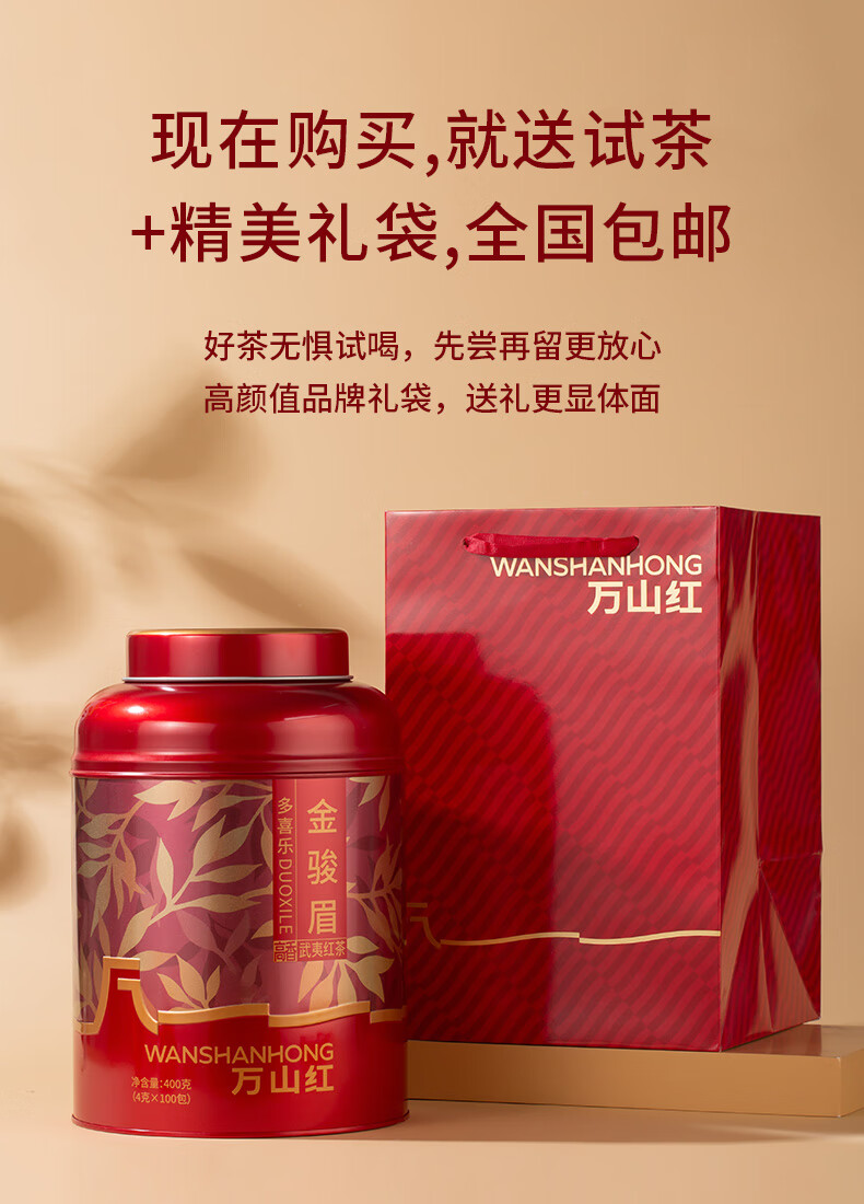 八馬萬(wàn)山紅武夷紅茶金駿眉200g+大單罐多喜樂(lè)金駿眉400g 禮品已成功加入PPT!