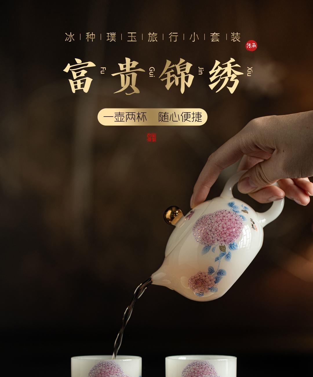 尾橋下窯冰種璞玉一壺兩杯帶茶盤富貴錦繡旅行小套裝節(jié)日會議禮品